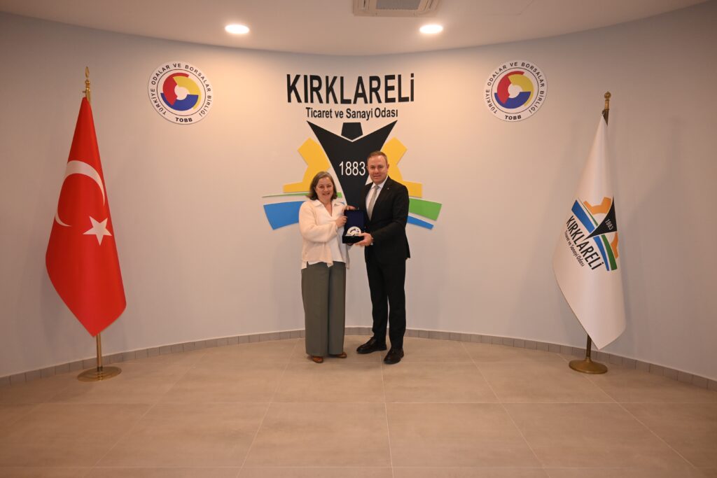 Yapılabilecek olan ticari iş birlikteliklerinin görüşüldüğü ziyarette Yönetim Kurulu Başkanımız Soner Ilık, odamızın çalışmaları ve Kırklareli’deki yatırım imkanları hakkında Almanya İstanbul Başkonsolosu Dr. Regine Grienberger’e bilgiler verdi. İki ülke arasındaki iyi ilişkileri daha da geliştirmek için üzerlerine düşen her türlü göreve hazır olduklarını belirtti.