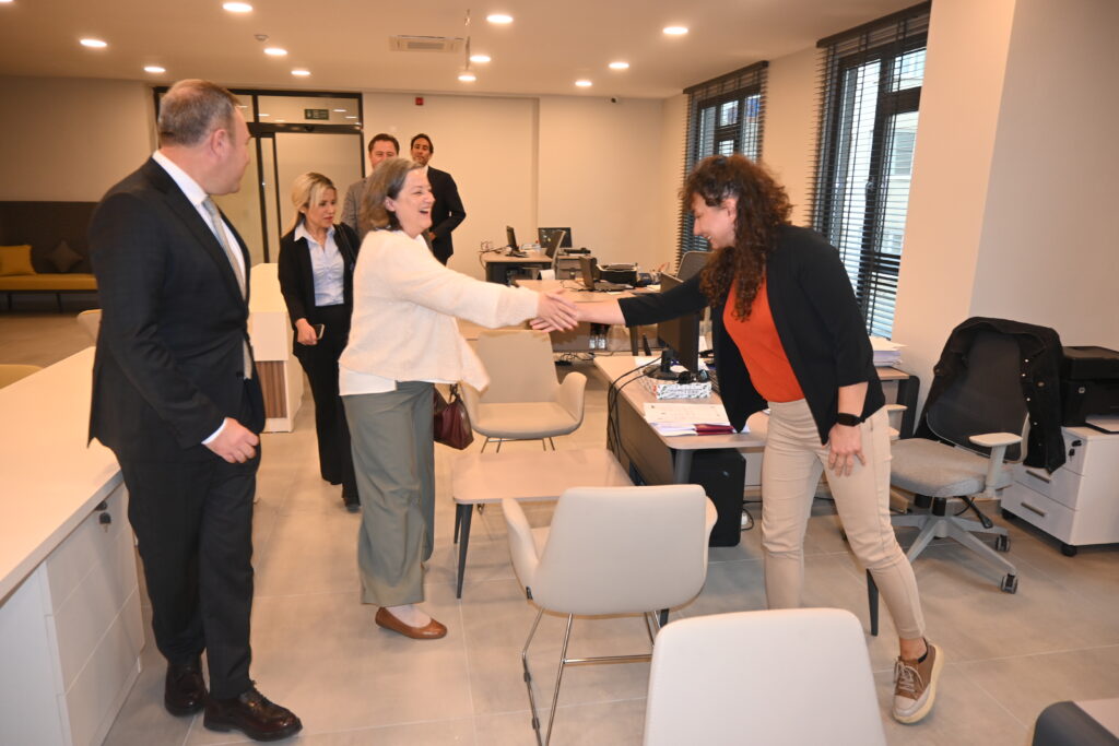 Almanya İstanbul Başkonsolosu Dr. Regine Grienberger ile Siyaset&İnsan Hakları Sorumlusu Konsolos Sammy Düsdieker yeni hizmet binamızı gezerek, Yönetim Kurulu Başkanımız Soner Ilık’tan, yürütülen projeler, sürdürülen faaliyetler ve geleceğe dönük planlamalar hakkında bilgiler aldı.