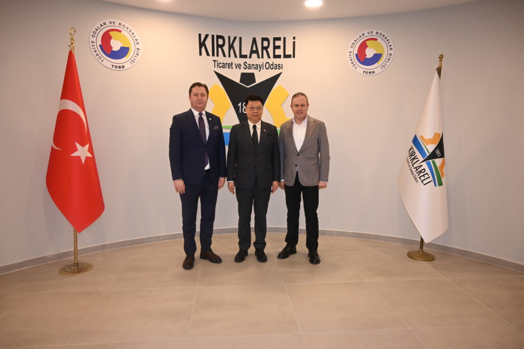 Odamızı ziyaret eden Çin Halk Cumhuriyeti İstanbul Başkonsolosu Wei Xiaodong’u; Yönetim Kurulu Başkanımız Soner Ilık, Meclis Başkanımız İsmail Hakkı Özsan, Meclis Üyelerimiz ile oda personelimiz ağırladı. Çin Halk Cumhuriyeti İstanbul Başkonsolosu Wei Xiaodong; Kırklareli’nin çok çeşitli bir üretim şehri olarak dikkat çektiğine vurgu yaparak, ticari ve ekonomik iş birliğini geliştirmeyi arzu ettiklerini ifade etti.