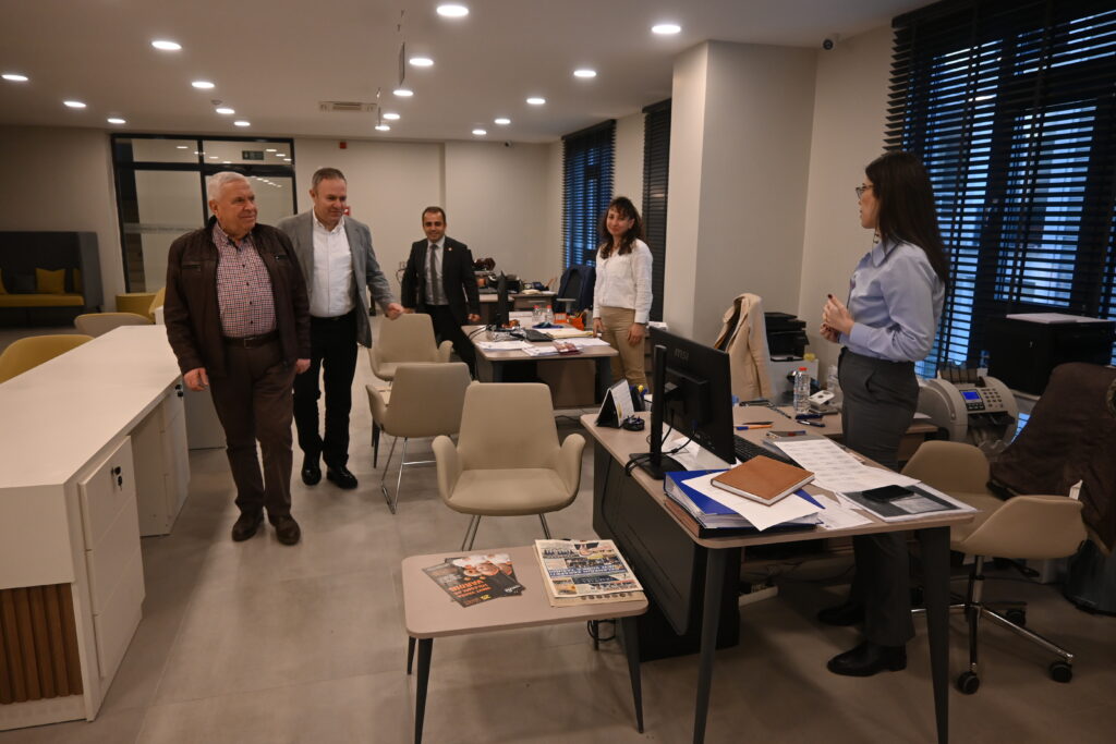 Yönetim Kurulu Başkanımız Soner Ilık, yeni hizmet binamızı ziyaret ederek “Hayırlı olsun” temennisinde bulunan Edirne Ticaret ve Sanayi Odası (Edirne TSO) Yönetim Kurulu Başkanı H. Sezai Irmak ile Edirne İl Tarım ve Orman Müdürü İslam Köse’yi ağırladı. Edirne TSO Yönetim Kurulu Başkanı H. Sezai Irmak, yeni hizmet binamızı gezerek, Yönetim Kurulu Başkanımız Soner Ilık’tan, yürütülen projeler, sürdürülen faaliyetler ve geleceğe dönük planlamalar hakkında da bilgiler aldı.