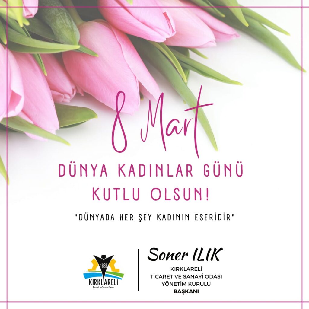 “Kadınlarımız; sosyal, ekonomik ve kültürel hayatta üstlendikleri önemli rol ile toplumların gelişiminde büyük katkı sağlamaktadır. Sevgiyi, emeği, fedakârlığı ve üretkenliği temsil eden, toplumumuzun en değerli yapı taşlarından biridir. Aile hayatından iş dünyasına, eğitimden sosyal yaşama kadar hayatın her alanında büyük bir özveriyle çalışan kadınlarımız, toplumumuzun gelişmesinde ve geleceğe güvenle ilerlemesinde önemli bir rol üstlenmektedir. Kadınlarımızın ekonomik ve sosyal yaşamda daha güçlü bir şekilde yer alması, sürdürülebilir kalkınma ve toplumsal refah açısından büyük önem taşımaktadır. İş dünyasında kadın girişimciliğinin artması, üretim ve istihdama sağlanan katkının büyümesi hem ülke ekonomisine hem de toplumsal gelişime önemli katkılar sunmaktadır. Kırklareli Ticaret ve Sanayi Odası olarak kadınlarımızın iş hayatında daha fazla yer almasını, girişimcilik faaliyetlerinin desteklenmesini ve kadın emeğinin hak ettiği değeri görmesini son derece önemsiyoruz. Kadınlarımızın üretimde, ticarette ve sosyal yaşamda daha güçlü bir şekilde var olması için yürütülen çalışmaları desteklemeye devam edeceğiz. Bu duygu ve düşüncelerle şehit ve gazi anneleri başta olmak üzere, hayatın her alanında emekleri, fedakârlıkları ve başarılarıyla toplumumuza değer katan tüm kadınlarımızın “8 Mart Dünya Kadınlar Günü”nü kutluyor; sağlık, mutluluk ve başarı dolu bir yaşam diliyorum.”