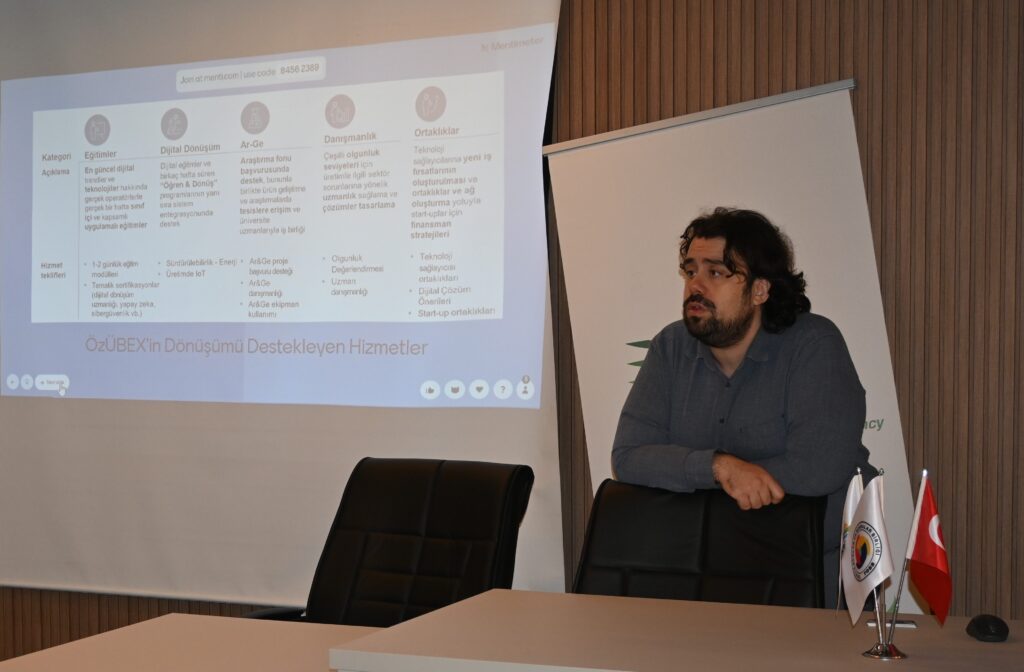 “İmalat Sanayii’nde faaliyet gösteren işletmelerimize yönelik olarak yürütülen program kapsamında; “Dijital Dönüşüm ve Üretimde Yapay Zeka Uygulamaları”, “Yeşil Dönüşüm ve Sürdürülebilirlik/Karbon Ayakizi Raporlamaları”, “İkiz Dönüşüm Projeleri Oluşturmak” konularında 3 gün boyunca ÖzÜBEX Teknoloji Merkezi Eğitmeni Kontrol ve Otomasyon Mühendisi Oğuzhan Şimşir tarafından katılımcılara bilgiler aktarılacak. Eğitimin devamında 9 Aralık 2025 Salı günü “Dijital ve Yeşil Dönüşüm Projeleri İçin Finansman Kaynakları” ve 10 Aralık 2025 Çarşamba günü ise İstanbul Çekmeköy’deki “ÖzÜBEX Teknoloji Merkezi Ziyareti” ile programın uygulamalı bölümü tamamlanacak.