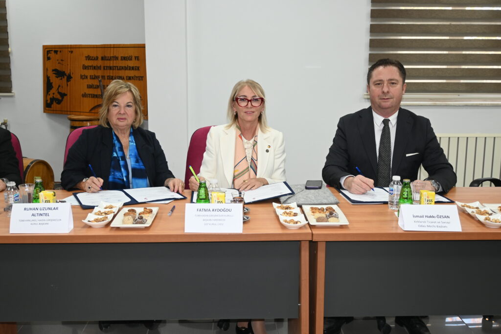 TOBB Kadın Girişimciler Kurulu Başkan Yardımcısı Fatma Aydoğdu’nun slayt eşliğinde yaptığı sunumun ardından “Sanayide Kadın Eli Projesi Paydaş Kurumlar Arası İş Birliği Protokolü”; T.C. Kırklareli Valiliği, T.C. Kırklareli Belediyesi, Kırklareli Üniversitesi, Kırklareli Ticaret ve Sanayi Odası, Kırklareli Organize Sanayi Bölgesi, Trakya Kalkınma Ajansı, KOSGEB Kırklareli Müdürlüğü, İŞKUR Kırklareli İl Müdürlüğü, T.C. Kırklareli İl Milli Eğitim Müdürlüğü, Karakaş Mahallesi Muhtarlığı, Karacaibrahim Mahallesi Muhtarlığı, Doğu Mahallesi Muhtarlığı, İstasyon Mahallesi Muhtarlığı ile Yayla Mahallesi Muhtarlığı’nın yetkilileri ve TOBB Kırklareli Kadın Girişimciler Kurulu Başkanı Ruhan Uzunlar Altıntel tarafından imzalandı.