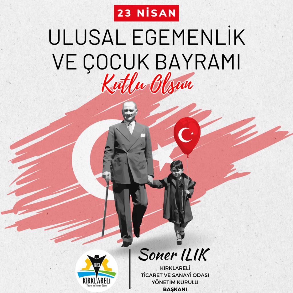 Yönetim Kurulu Başkanımız Soner Ilık, Türkiye Büyük Millet Meclisi’nin (TBMM) Kuruluşu’nun 106. Yıldönümü ve “23 Nisan Ulusal Egemenlik ve Çocuk Bayramı” dolayısıyla yayımladığı mesajında;  “Gazi Meclisimiz Türkiye Büyük Millet Meclisi’nin kuruluşunun 106. yıldönümünü ve millet iradesinin en güçlü şekilde tecelli ettiği bu anlamlı günü, geleceğimizin teminatı olan çocuklarımıza armağan edilen “23 Nisan Ulusal Egemenlik ve Çocuk Bayramı” ile birlikte büyük bir gurur ve coşku içerisinde kutluyoruz. 23 Nisan, aziz milletimizin bağımsızlık mücadelesinde ortaya koyduğu kararlılığın, birlik ve beraberliğinin en önemli simgelerinden biridir. Cumhuriyetimizin kurucusu Ulu Önder Gazi Mustafa Kemal Atatürk’ün çocuklara armağan ettiği bu anlamlı gün, sadece ülkemiz için değil, dünya çocukları için de barışın, kardeşliğin ve umut dolu bir geleceğin sembolüdür. Ulu Önder Gazi Mustafa Kemal Atatürk’ün; “Küçük hanımlar, küçük beyler. Sizler hepiniz geleceğin bir gülü, yıldızı ve ikbal ışığısınız. Memleketi asıl ışığa boğacak olan sizsiniz. Kendinizin ne kadar önemli, değerli olduğunuzu düşünerek ona göre çalışınız. Sizlerden çok şey bekliyoruz” veciz sözleri çok değerlidir.