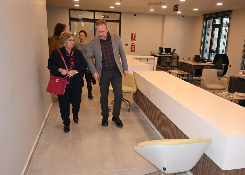 Yeni hizmet binamızı ziyaret ederek “Hayırlı Olsun” temennisinde bulunan Türkiye Odalar ve Borsalar Birliği (TOBB) Kırklareli Kadın Girişimciler Kurulu Başkanı Ruhan Uzunlar Altıntel, Yönetim Kurulu Üyesi Nilay Altıntel ile Kırklareli Ticaret Borsası Basın-Yayın Sorumlusu Hatice Denktaş’ı, Yönetim Kurulu Başkanımız Soner Ilık ağırladı. TOBB Kırklareli Kadın Girişimciler Kurulu Başkanı Ruhan Uzunlar Altıntel ve beraberindekiler yeni hizmet binasını gezerek, Yönetim Kurulu Başkanımız Soner Ilık’tan, yürütülen projeler, sürdürülen faaliyetler ve geleceğe dönük planlamalar hakkında bilgiler aldı.
