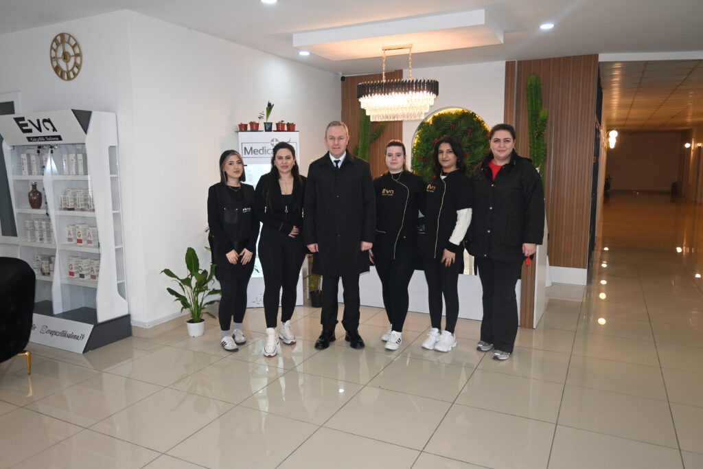 “Eva Güzellik Salonu”nda verilen hizmetler hakkında bilgiler veren işletme sahibi Dilek Öz, ziyaretlerinden ve güzel temennilerinden dolayı Yönetim Kurulu Başkanımız Soner Ilık ile Genel Sekreterimiz F. Merve Çelik’e teşekkür etti.
