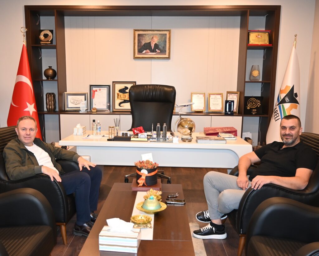 Yönetim Kurulu Başkanımız Soner Ilık, yeni hizmet binamıza “Hayırlı olsun” ziyaretinde bulunan üyemiz Üstünol Nakliyat İnşaat Sanayi ve Ticaret Limited Şirketi sahibi Muhammed Üstünol’u ağırladı.