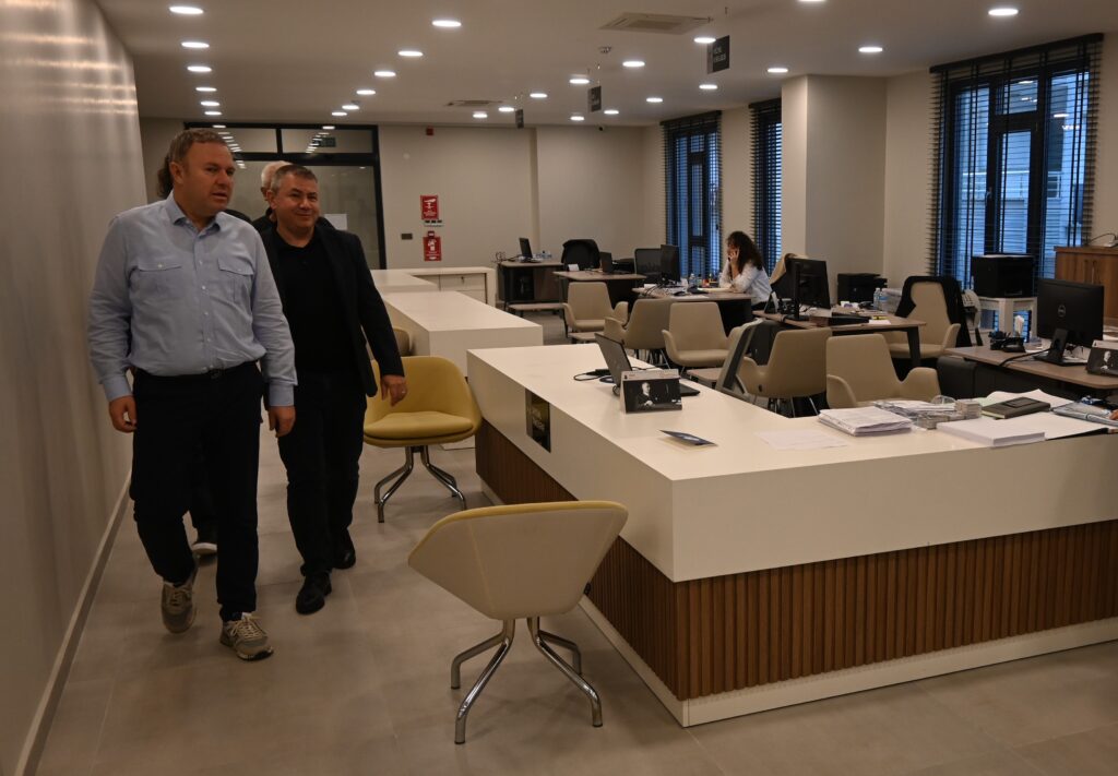 Yönetim Kurulu Başkanımız Soner Ilık, yeni hizmet binamıza “Hayırlı olsun” ziyaretinde bulunan Kırklareli Organize Sanayi Bölgesi (KOSB) Müdürü Sebahattin Dönmez, Mehmet Tetik ile Alper Çeçen’i ağırladı. KOSB Müdürü Sebahattin Dönmez ile beraberindekiler yeni hizmet binamızı gezerek, Yönetim Kurulu Başkanımız Soner Ilık’tan, yürütülen projeler, sürdürülen faaliyetler ve geleceğe dönük planlamalar hakkında da bilgiler aldı.