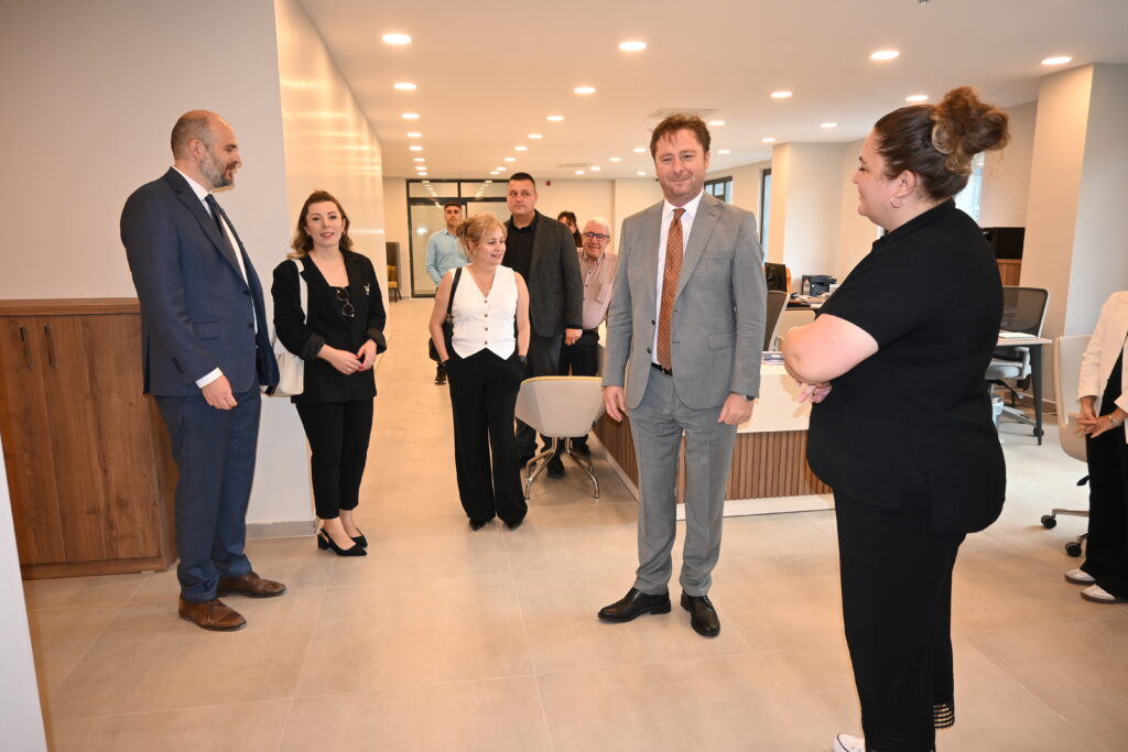 Yeni hizmet binamızı ziyaret eden Yunanistan Edirne Konsolosu Sethelos Isidoros Balios ile Kosmos Vize Hizmetleri Genel Müdürü Fatma Baysan’ı; Meclis Başkanımız İsmail Hakkı Özsan, Yönetim Kurulu Başkan Yardımcılarımız Hüsnü Güngör Akarca ve Aytaç Yüce, Genel Sekreterimiz F. Merve Çelik ile oda personelimiz ağırladı. Yunanistan Edirne Konsolosu Sethelos Isidoros Balios ile beraberindekiler yeni hizmet binasını gezerek, Meclis Başkanımız İsmail Hakkı Özsan’dan, yürütülen projeler, sürdürülen faaliyetler ve geleceğe dönük planlamalar hakkında da bilgiler aldı.