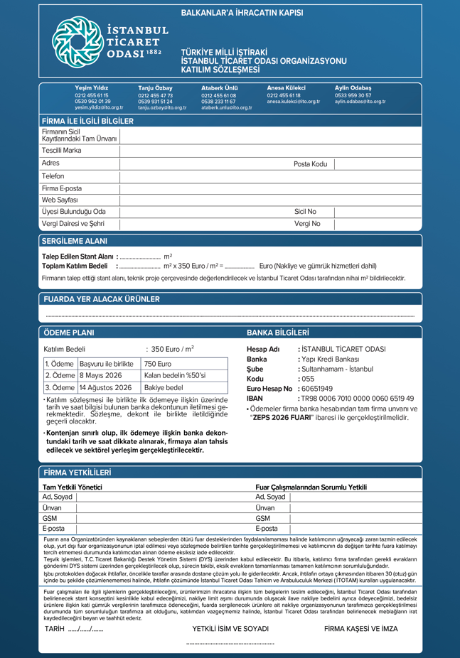 ZEPS 2026 Fuarı Programı ve ZEPS 2026 Fuarı Katılım Sözleşmesi EK’te tarafınıza sunulmuştur.